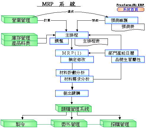 | 本管理系統主要內容為營業之預測、生產計劃試算、產能負荷之資料查詢、MRP計算、材料之計劃與需求分析,及MRP建議訂購資料轉請購等作業。 |
