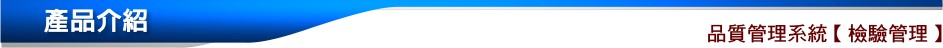 系統提供採購進料檢驗/進料特採作業、成品檢驗/成品特採作業、出貨檢驗/出貨特採作業、出貨退回檢驗/出貨退回特採...等作業。