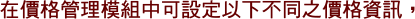 產品之標準售價及上下限之設定,藉由系統設定以落實銷售之管理。